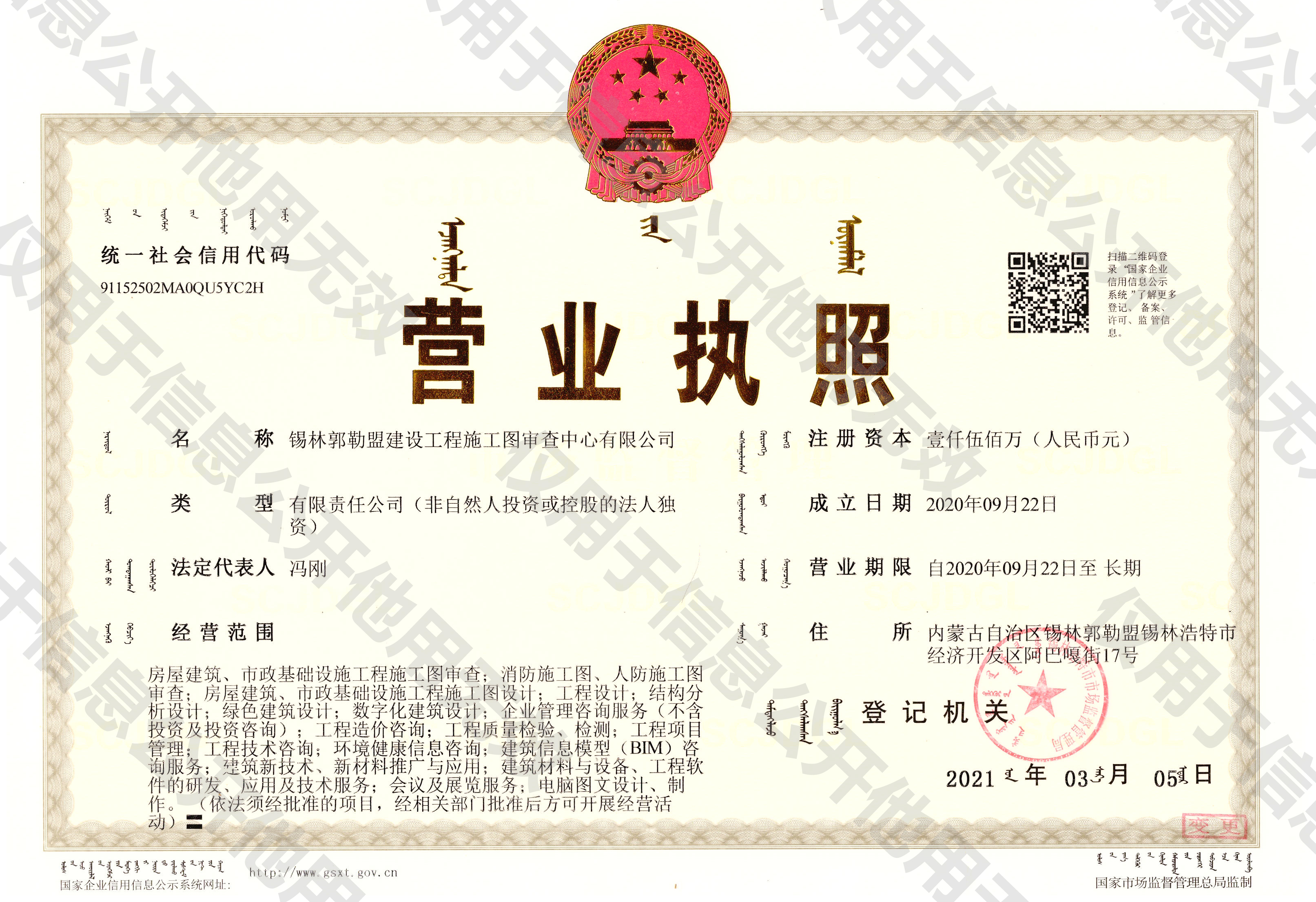 錫林郭勒盟建設(shè)工程施工圖審查中心有限公司是隸屬于錫盟城投集團(tuán)的全資子公司,成立于2020年,注冊(cè)資本金人民幣壹仟伍佰萬。